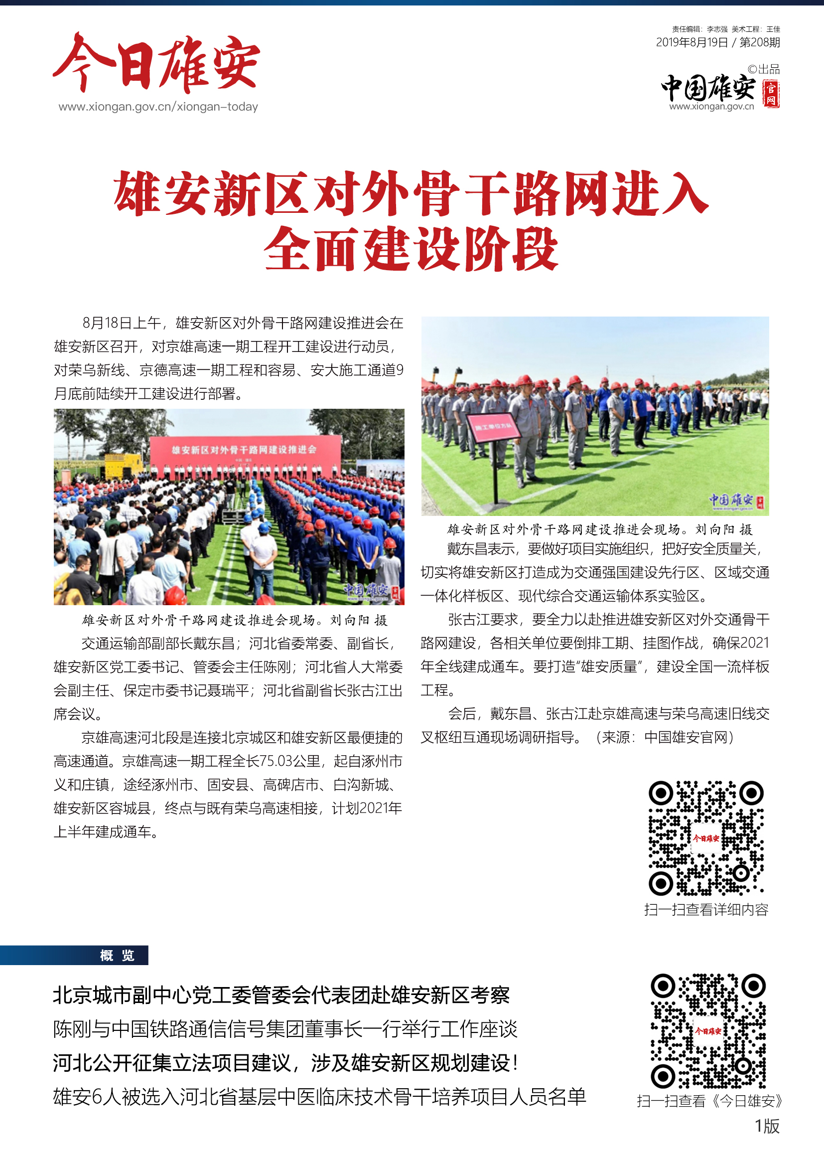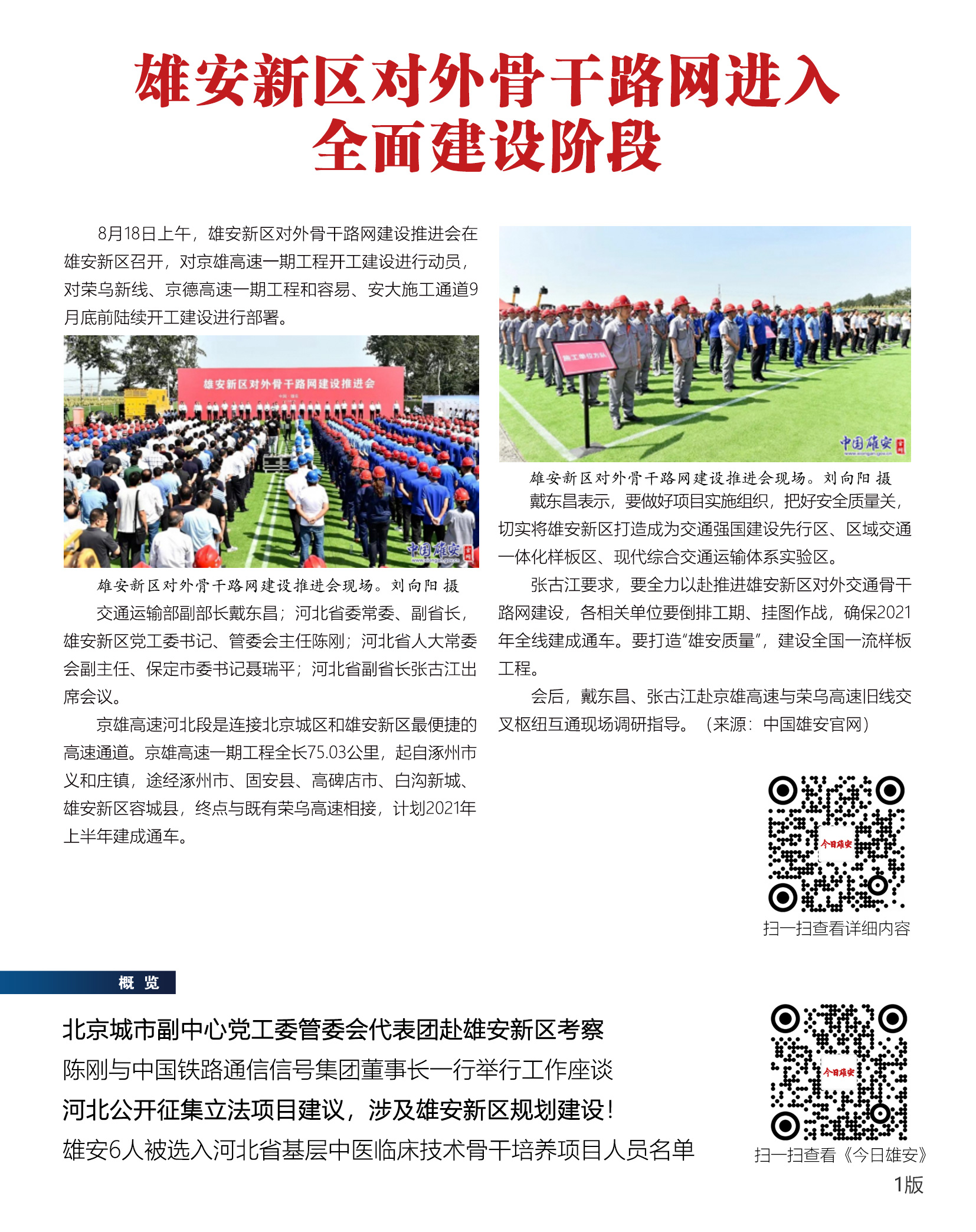 8月18日上午,雄安新区对外骨干路网建设推进会在雄安新区召开。