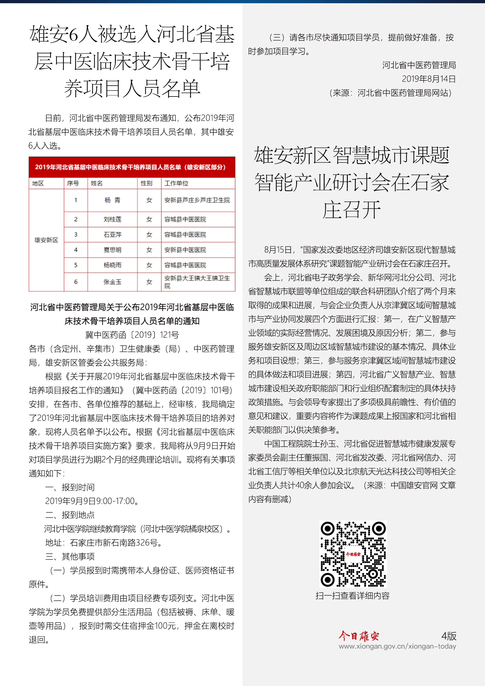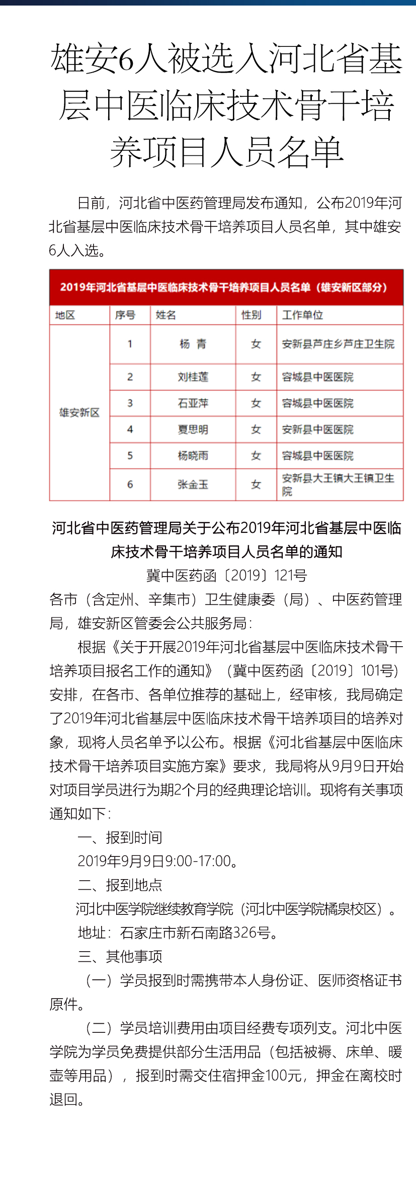 河北省中医药管理局关于公布2019年河北省基层中医临床技术骨干培养项目人员名单的通知