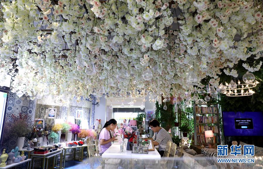 这是8月19日在石家庄市桥西区拍摄的李虹经营的花店。新华社记者 赵丹惠 摄