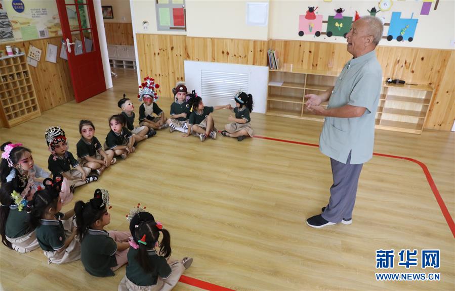 8月20日,在石家庄市井陉县亲亲宝贝幼儿园,河北省级非物质文化遗产项目微水丝弦代表性传承人王连柱给孩子们演唱丝弦。 微水丝弦属于河北石家庄地方戏曲,是河北省级非物质文化遗产项目,唱腔优美,戏装华丽,在当地深受百姓喜爱。近日,井陉县微水丝弦的艺人们走进当地幼儿园,向孩子们展示丝弦艺术,介绍戏曲基本知识,将民间艺术融入孩子们的心间。新华社记者 赵丹惠 摄