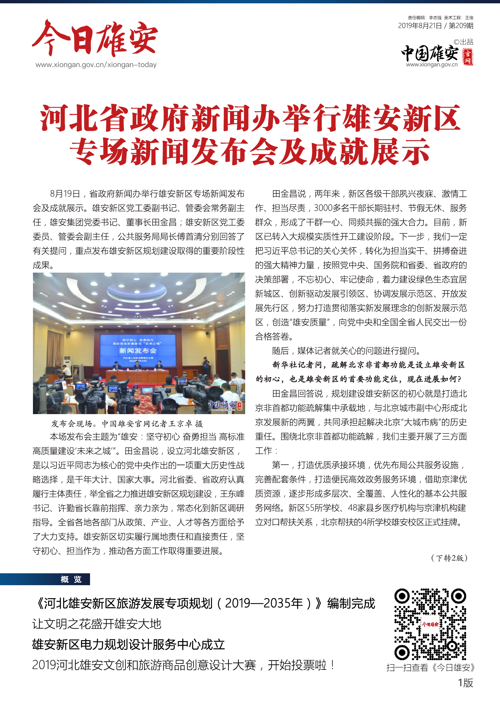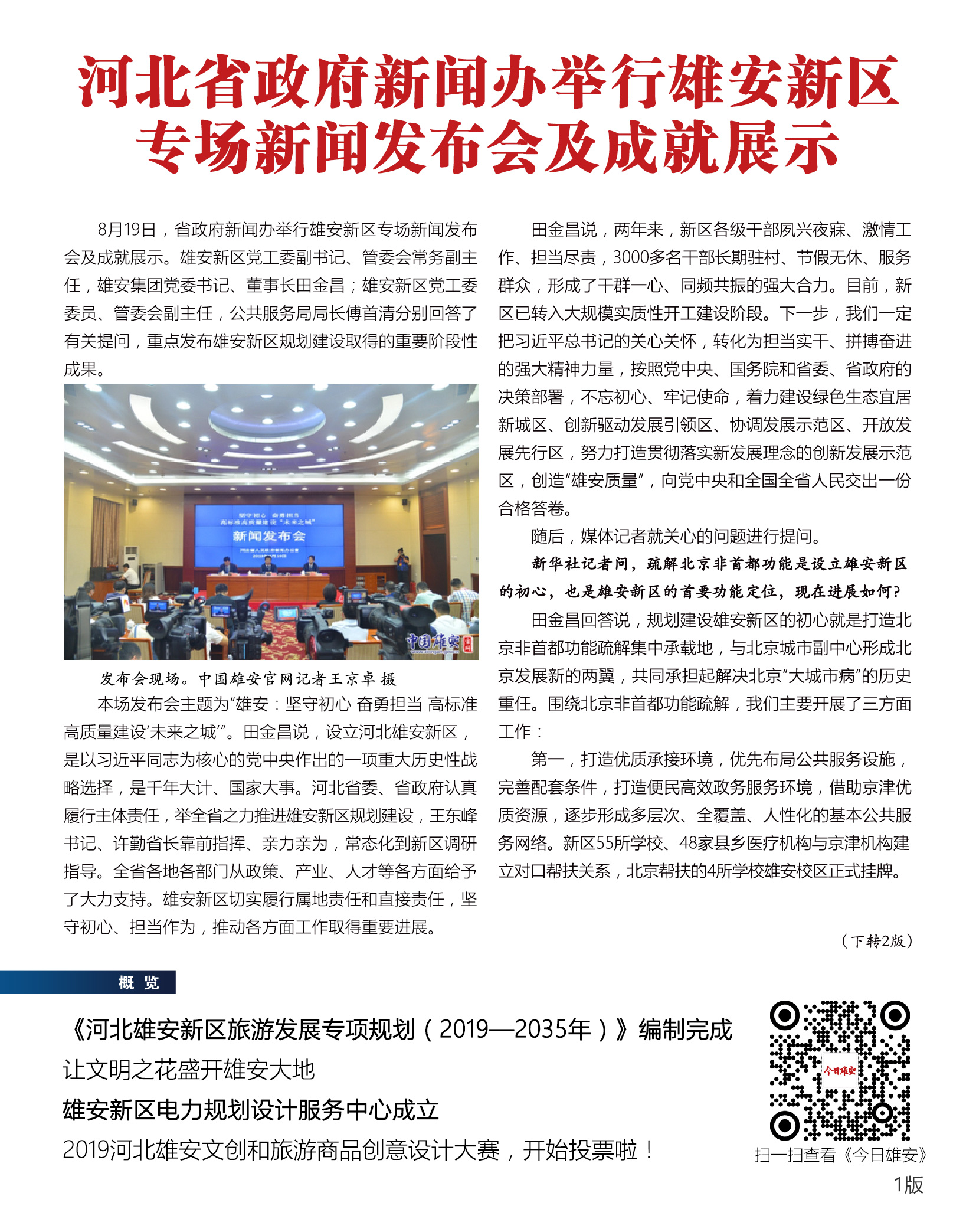 8月19日,河北省政府新闻办举行雄安新区专场新闻发布会及成就展示。