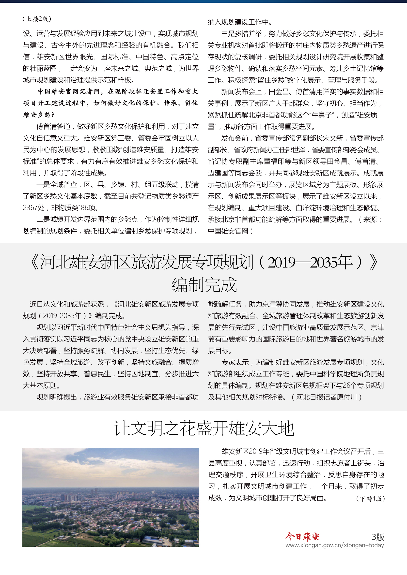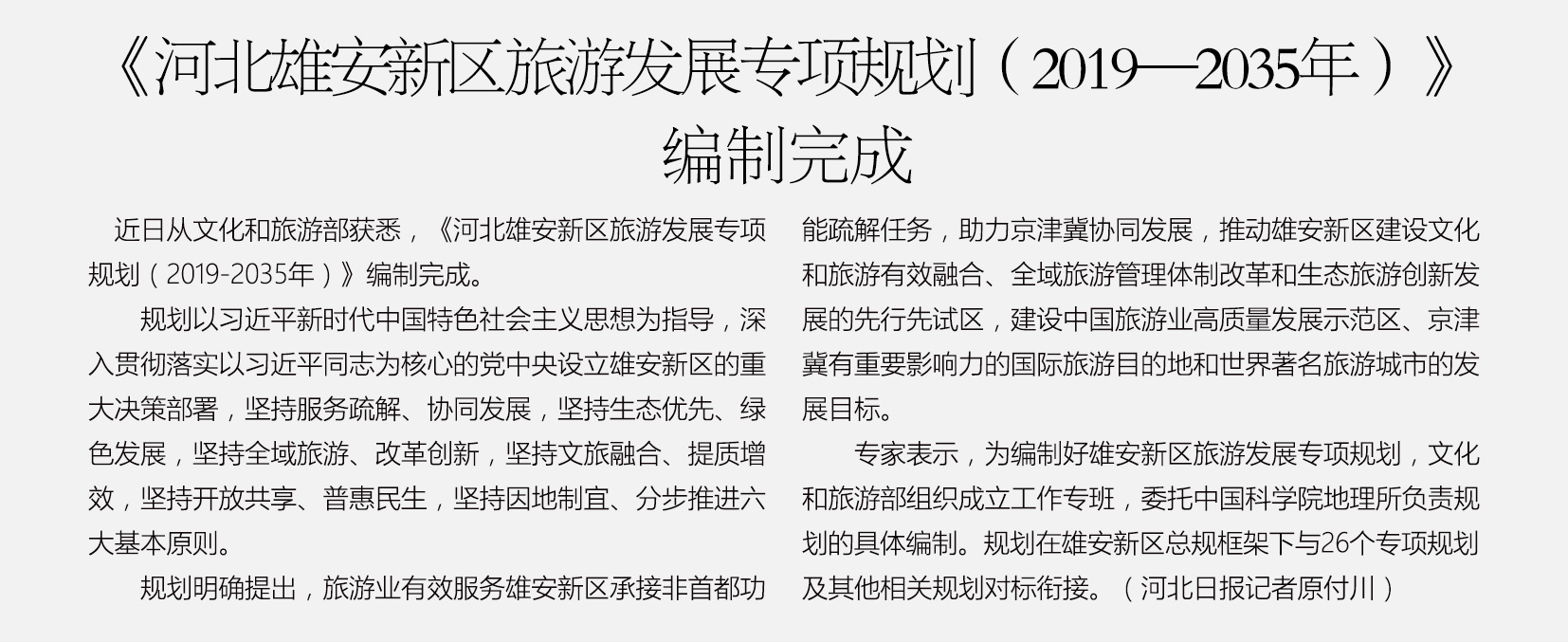 《河北雄安新区旅游发展专项规划(2019—2035年)》编制完成