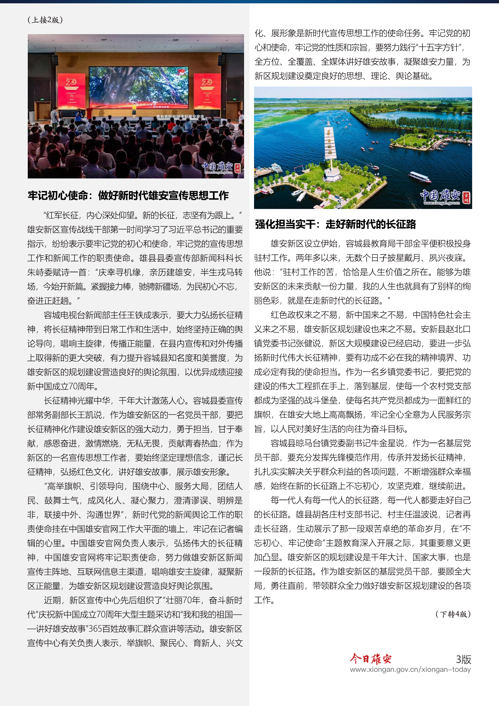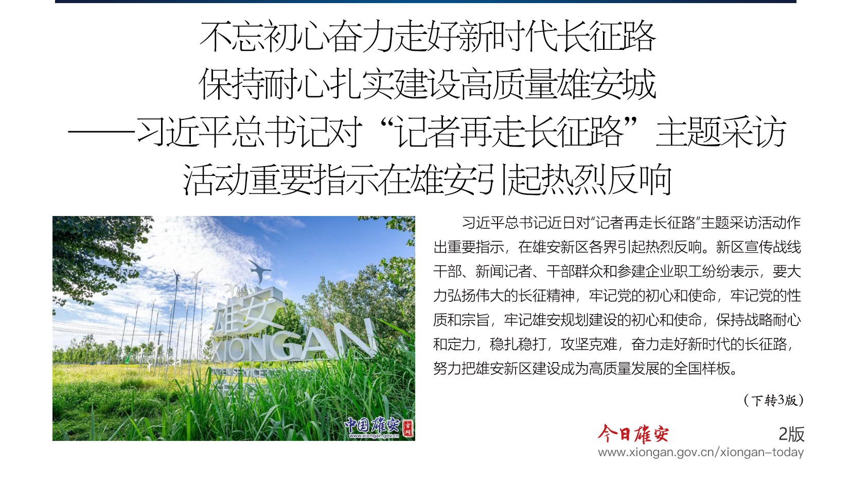 不忘初心奋力走好新时代长征路 保持耐心扎实建设高质量雄安城——习近平总书记对“记者再走长征路”主题采访活动重要指示在雄安引起热烈反响