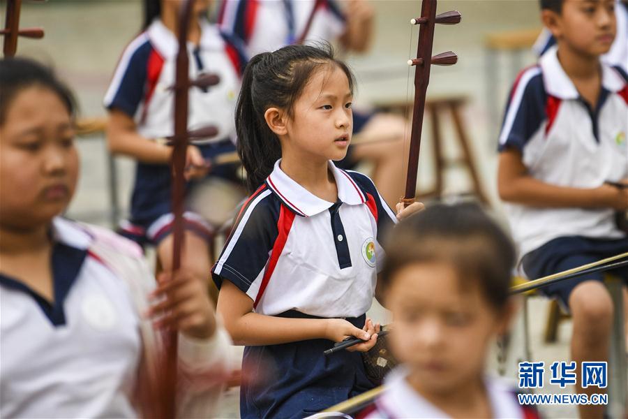 当日,河北饶阳县举行“二胡进校园”集体大练习。据了解,该活动是饶阳县依托本县传统民族乐器产业优势,利用暑假开展的“民族乐器进校园”活动第一期。新华社记者李晓果 摄