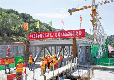 10.近日,京张高铁八达岭长城站站房主体结构封顶,至此,京张高铁全线站房主体结构建设全部完成。