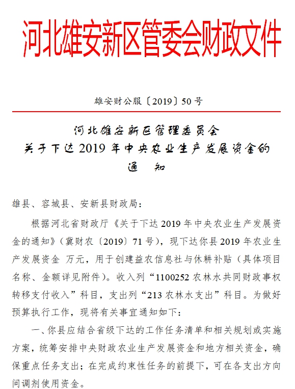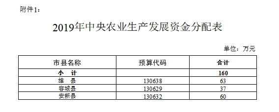 现将雄安新区下达2019年中央农业生产发展资金资金分配结果予以公告,如有异议,请向以下部门提出意见。