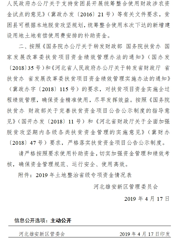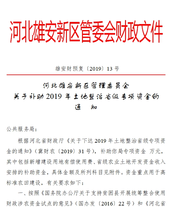 现将雄安新区补助2019年土地整治省级专项资金资金分配结果予以公告,如有异议,请向以下部门提出意见。