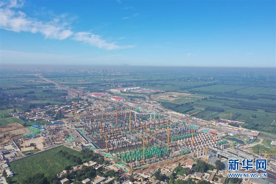 京雄城际铁路雄安站总建筑面积47万平方米,地上3层,地下2层,其中地下主体结构将于近期完成,即将转入地上主体结构施工。新华社记者 邢广利 摄