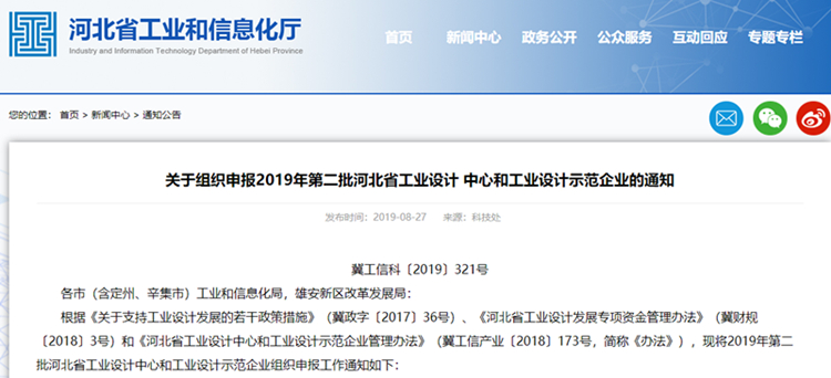从河北省工信厅获悉,8月26日至9月30日,2019年第二批河北省工业设计中心和工业设计示范企业组织申报。