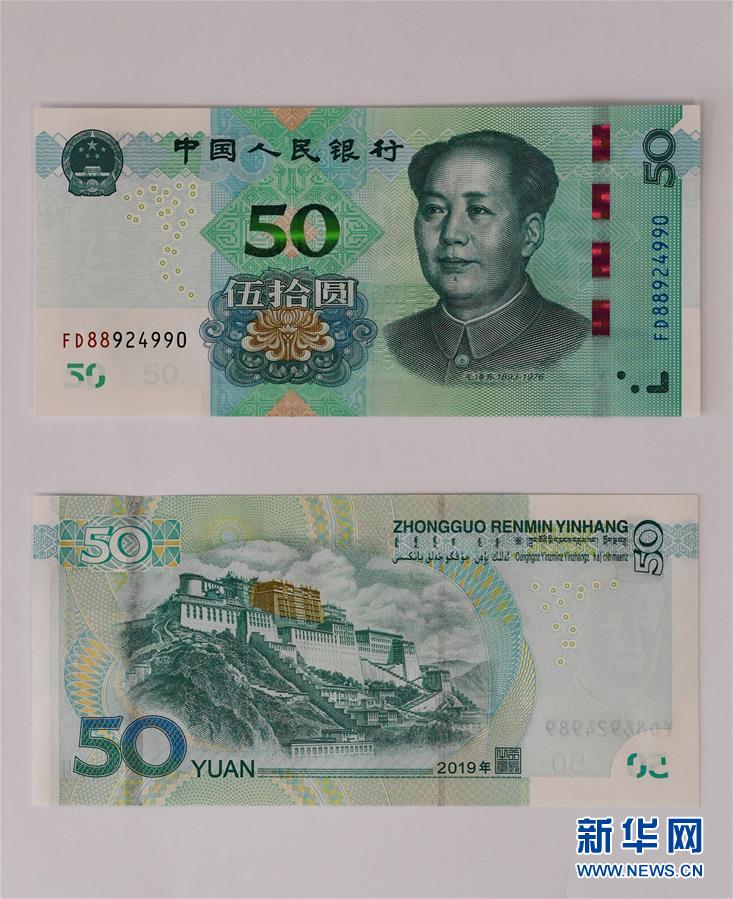 2019年版第五套人民币50元纸币正反面。8月30日,2019年版第五套人民币正式发行。在保持现行第五套人民币主图案等相关要素不变的前提下,新版提高了票面色彩鲜亮度,优化了票面结构层次与效果,提升了整体防伪性能。新华社记者 陈晔华 摄