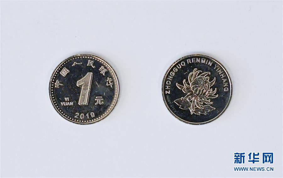 2019年版第五套人民币1元硬币正反面(8月30日摄)。8月30日,2019年版第五套人民币正式发行。在保持现行第五套人民币主图案等相关要素不变的前提下,新版提高了票面色彩鲜亮度,优化了票面结构层次与效果,提升了整体防伪性能。新华社记者 陈晔华 摄