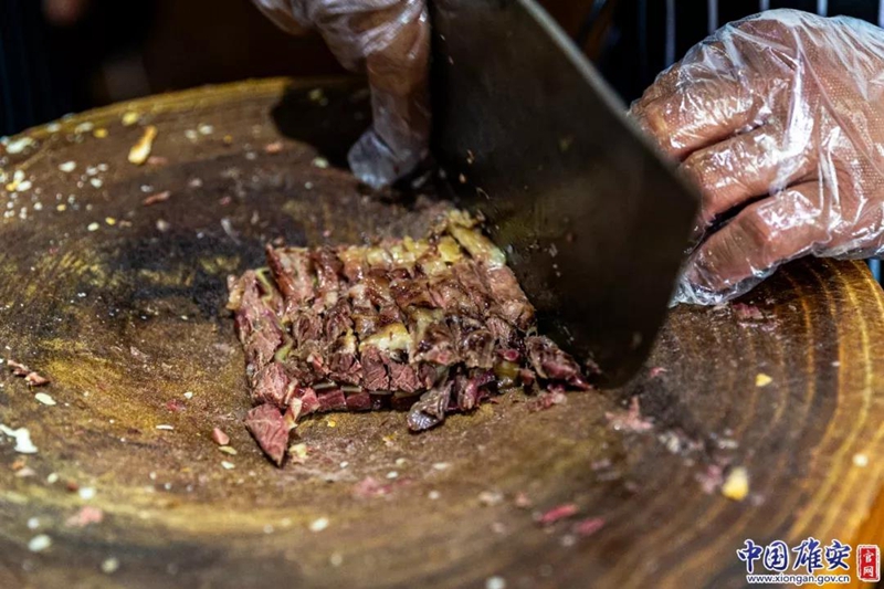 夹裹上鲜嫩多汁、熟而不柴的驴肉