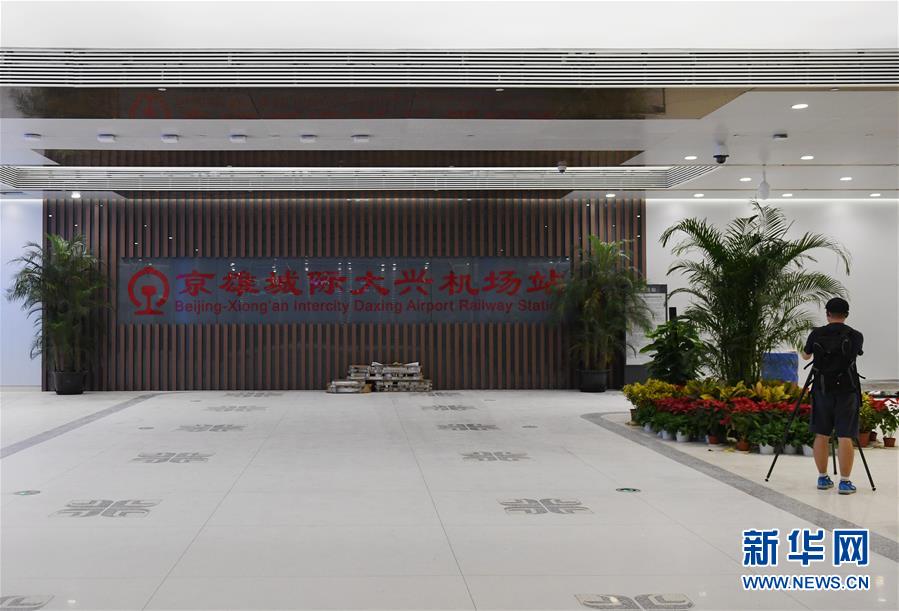 9月4日拍摄的位于北京大兴国际机场内部的京雄城际大兴机场站。随着各项验收的完成,北京大兴国际机场投运在即。北京大兴国际机场是目前世界最大的综合交通枢纽,拥有全球首座高铁地下穿行的机场航站楼、全球首座双层出发双层到达的航站楼、世界最大单体航站楼。新华社记者 张晨霖 摄