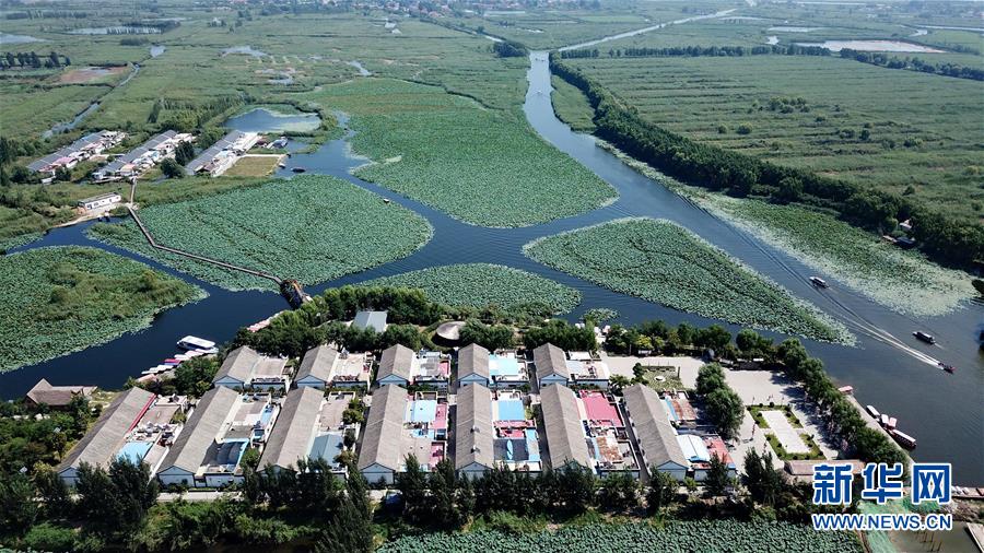 这是8月31日使用无人机拍摄的白洋淀内村庄。记者从河北雄安新区管委会了解到,目前,雄安新区已转入大规模实质性开工建设阶段,今年69项重点建设项目已开工20个,剩余项目正在全力推进。京雄城际铁路、千年秀林、白洋淀生态修复等项目建设稳步推进。新华社记者 牟宇 摄
