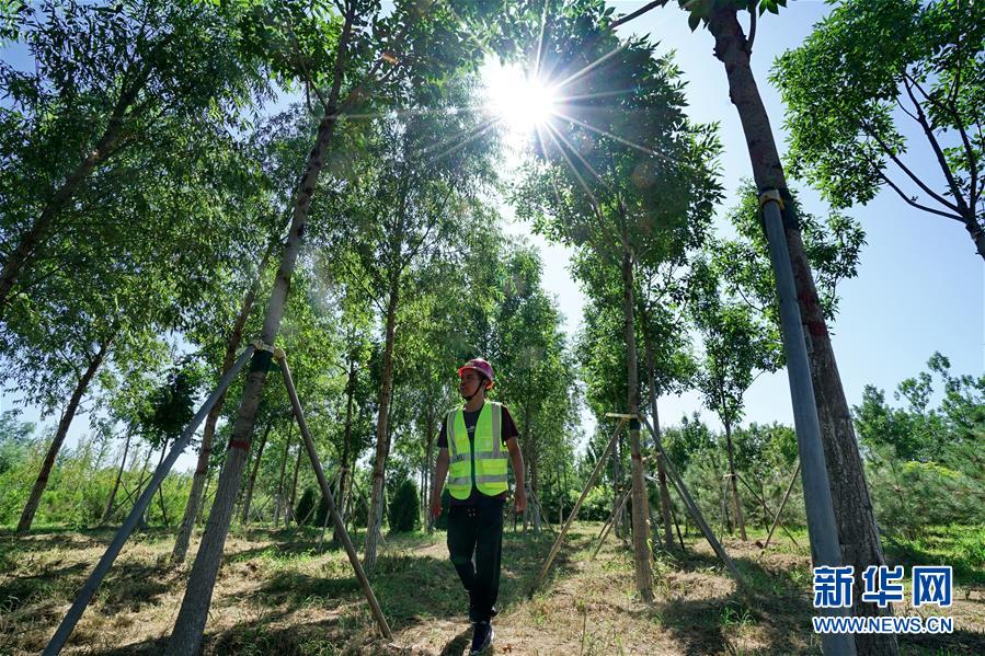 一名护林员在千年秀林内巡视(8月29日摄)。记者从河北雄安新区管委会了解到,目前,雄安新区已转入大规模实质性开工建设阶段,今年69项重点建设项目已开工20个,剩余项目正在全力推进。京雄城际铁路、千年秀林、白洋淀生态修复等项目建设稳步推进。新华社记者 牟宇 摄