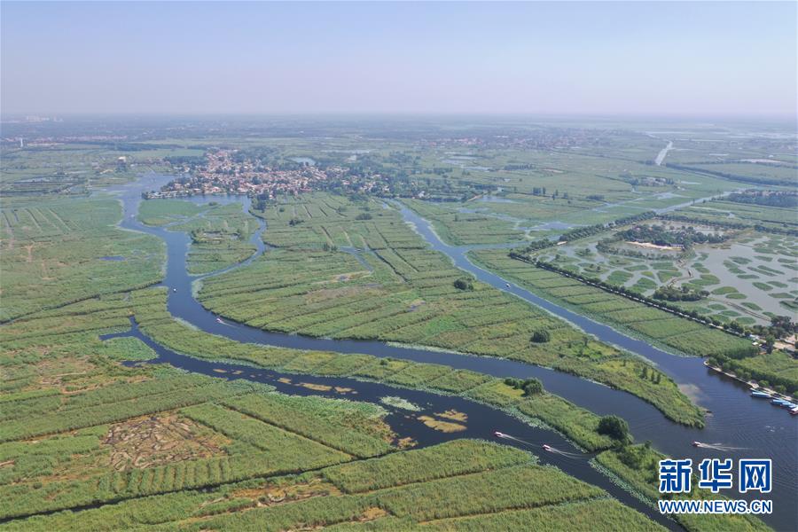 雄安新区白洋淀(8月31日无人机拍摄)。记者从河北雄安新区管委会了解到,目前,雄安新区已转入大规模实质性开工建设阶段,今年69项重点建设项目已开工20个,剩余项目正在全力推进。京雄城际铁路、千年秀林、白洋淀生态修复等项目建设稳步推进。新华社记者 邢广利 摄