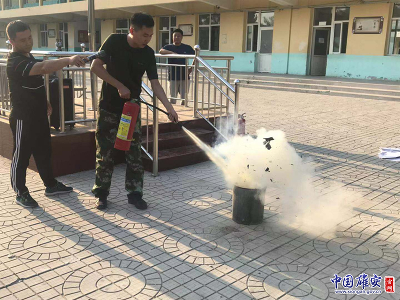 南阳中学教师进行灭火器使用实操。中国雄安官网记者王京卓 摄