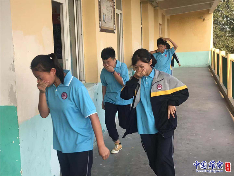 南阳中学学生进行火灾逃生演练。中国雄安官网记者王京卓 摄