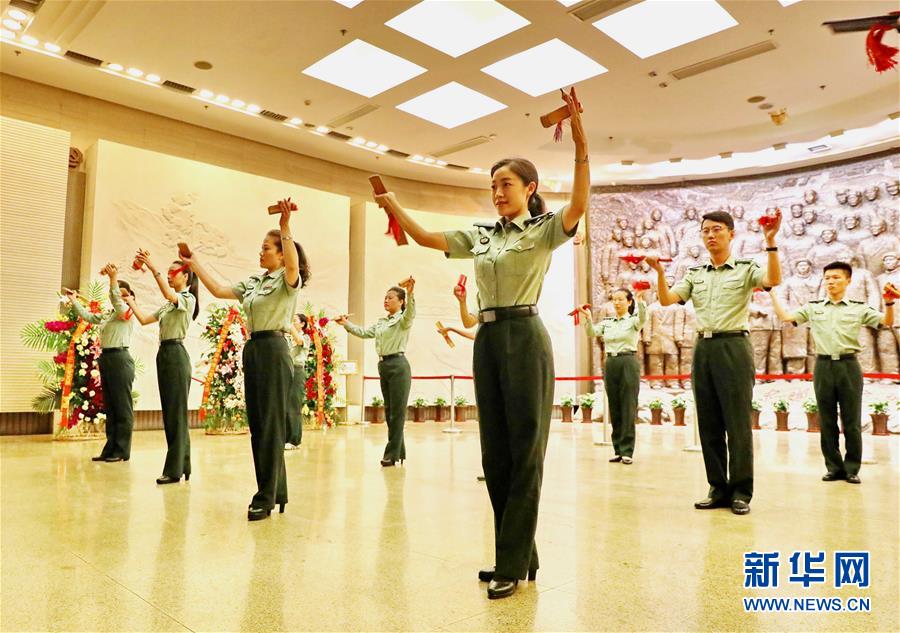 8月30日,在河北省平山县西柏坡纪念馆,讲解员团队在进行班前会的打快板训练。 河北省石家庄市西柏坡纪念馆有一支讲解员队伍,团队成立至今已有近50年,目前讲解员有70余名。学习、讲解、写作是讲解员最为寻常的工作状态。如今,西柏坡纪念馆讲解员队伍已成为西柏坡纪念馆的一面旗帜、一个品牌,被誉为传播西柏坡精神的“百灵鸟”。新华社记者杨世尧 摄