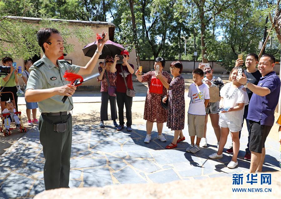 8月30日,在河北省平山县西柏坡旧址,西柏坡纪念馆讲解员韩向飞在为游客进行讲解。韩向飞在讲解员岗位已经近10年,从刚开始笼统地记背讲解词,到现在有了自己一套独特的解说方式。 河北省石家庄市西柏坡纪念馆有一支讲解员队伍,团队成立至今已有近50年,目前讲解员有70余名。学习、讲解、写作是讲解员最为寻常的工作状态。如今,西柏坡纪念馆讲解员队伍已成为西柏坡纪念馆的一面旗帜、一个品牌,被誉为传播西柏坡精神的“百灵鸟”。新华社记者杨世尧 摄