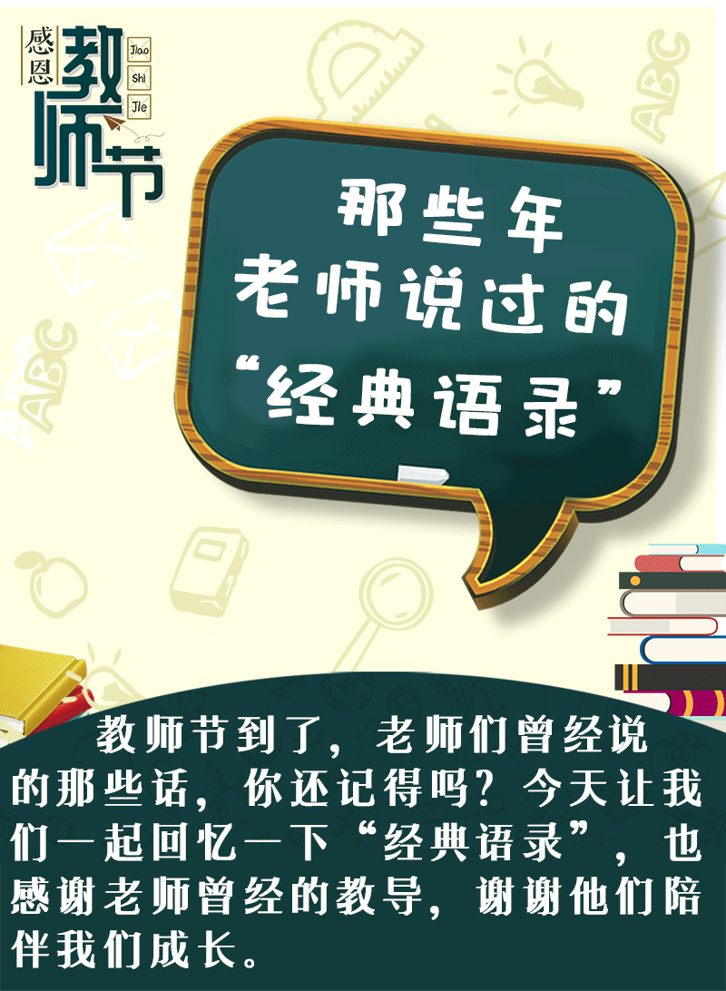 教师节到了,老师们曾经说的那些话,你还记得吗?今天让我们一起回忆一下“经典语录”,也感谢老师曾经的教导,谢谢他们陪伴我们成长。