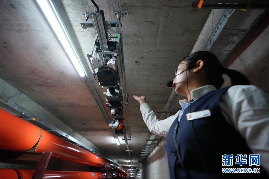 8月30日,工作人员在介绍雄安市民服务中心的地下管廊。新华社记者 邢广利 摄