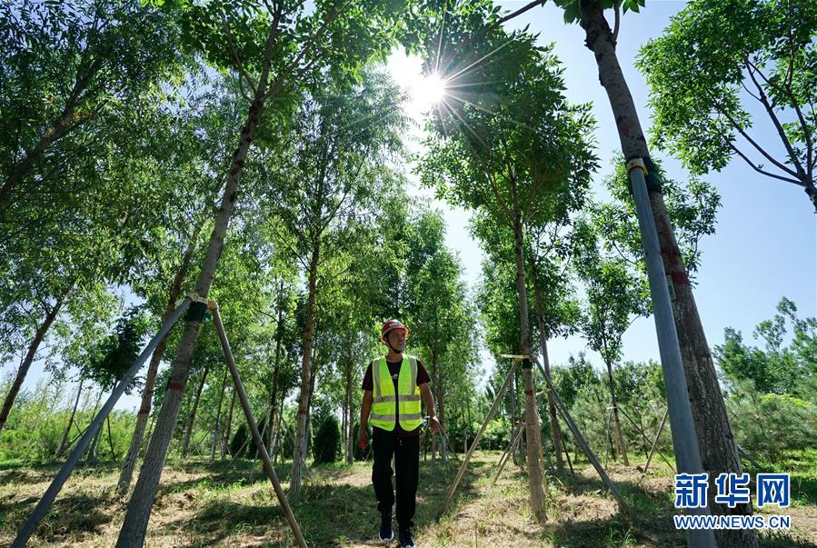 护林员高建勋在雄安新区“千年秀林”内巡视(8月29日摄)。新华社记者 牟宇 摄