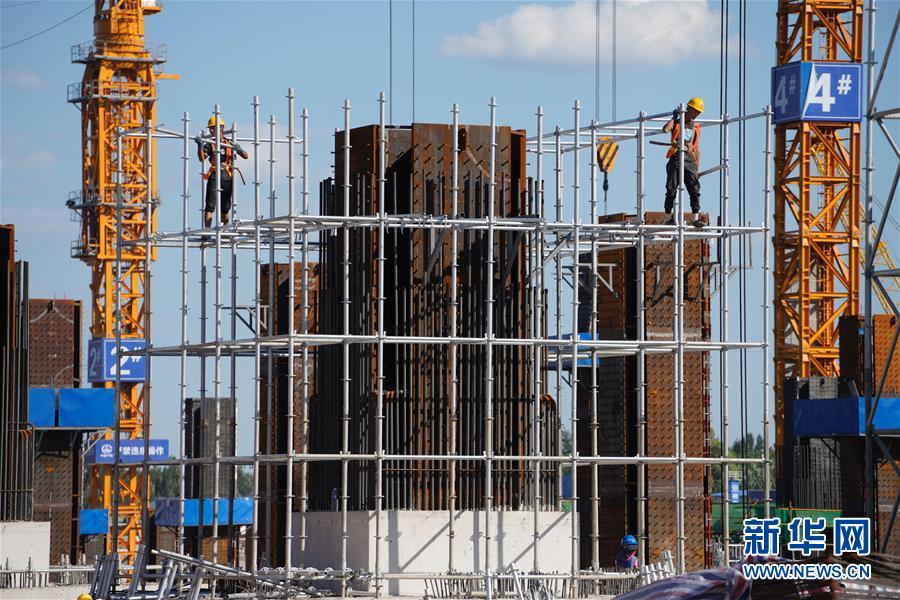 工人在京雄城际铁路雄安站施工(8月29日摄)。新华社记者 邢广利 摄