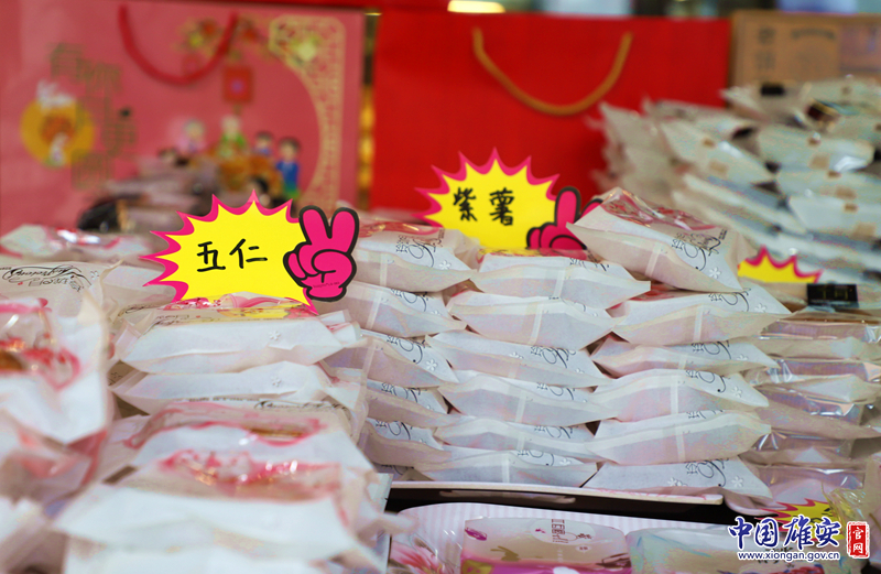 五仁、紫薯、咸蛋黄……多种口味的月饼供顾客选择。中国雄安官网记者石萍婷 摄