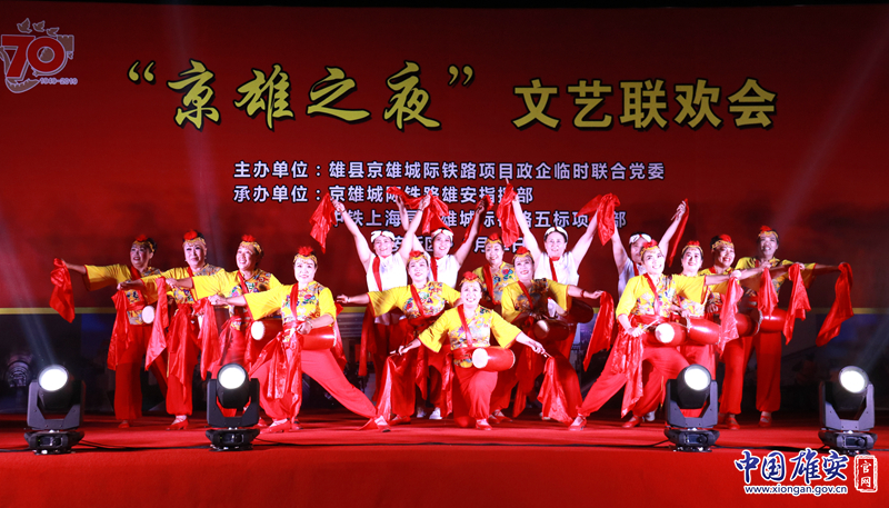 当晚,在中铁上海工程局京雄城际铁路雄县制梁场,300余名京雄城际铁路建设者和雄县地区铁路沿线的民众观看了“京雄之夜”文艺联欢会。本次联欢会共设置了16个节目,节目围绕京雄城际铁路建设实际创作,由雄县文艺爱好者和铁路建设者共同演绎,精彩的表演赢得观众的热烈掌声。