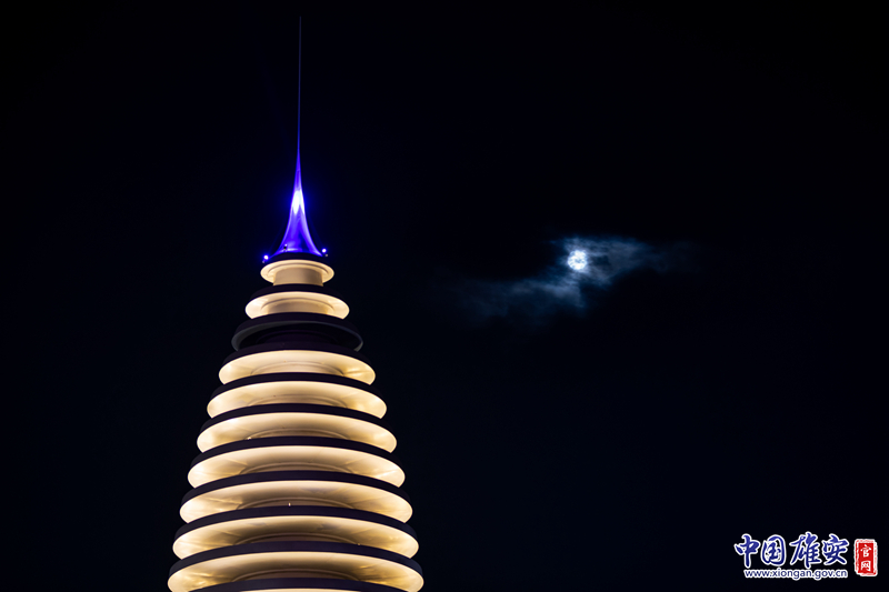 9月13日晚上8时20分左右,月亮透过云层缓缓露出半边面庞,若隐若现。中国雄安官网记者高盟 摄