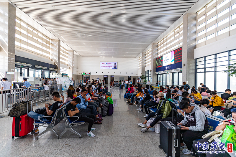 9月15日,白洋淀站候车大厅内座无虚席。中国雄安官网记者高盟 摄