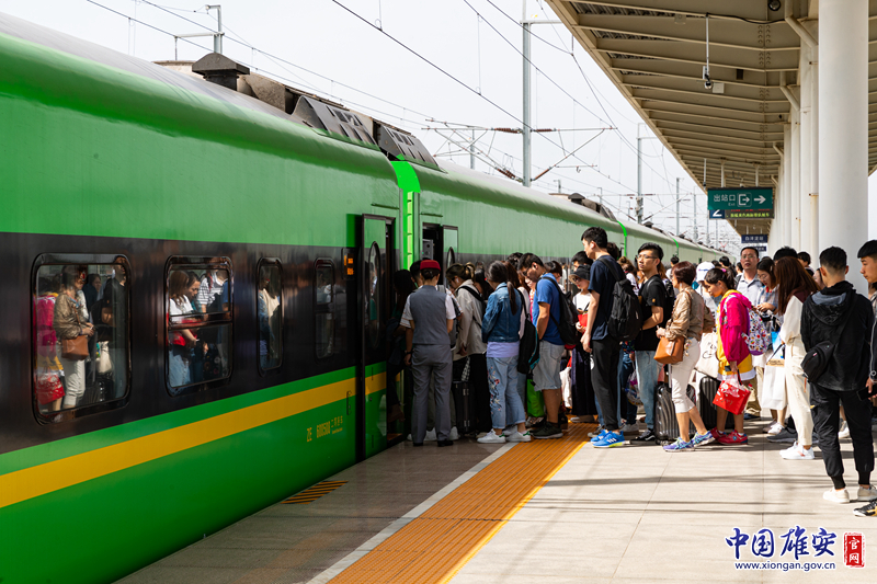 9月15日,白洋淀站站台前,旅客正在排队上车。中国雄安官网记者高盟 摄