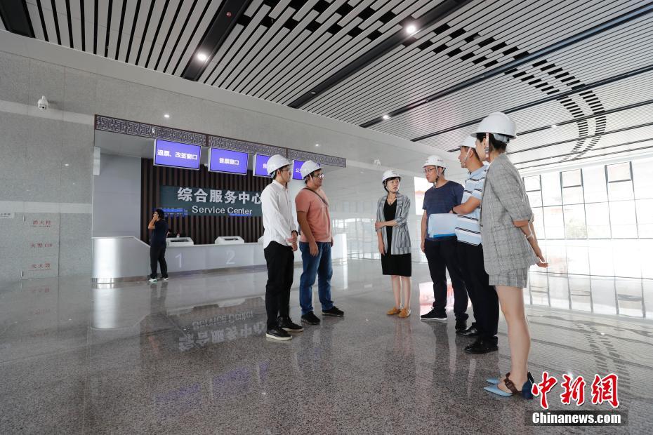 9月16日,由中铁第五勘察设计院集团有限公司负责设计的京雄城际北京大兴站开始设计验收工作,标志着京雄城际“出京第一站”已正式竣工,即将投入使用。北京大兴站未来是新机场与北京城区接驳的重要节点,同时也是北京与雄安新区的重要桥梁。该站房为线下式,车场设于高架桥上,总建筑面积17032.42平方米,建筑正立面造型的柔和曲线,取自新机场的正立面剪影,与新机场相呼应。图为设计团队正在进行验收工作。中新社记者杜洋 摄