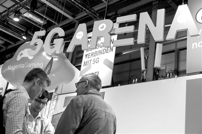 在德国首都柏林举办的第59届柏林国际消费电子展上,5G、AI(人工智能)、AR(虚拟现实)等新技术成为热点。图为参观者在德国电信公司的5G展区交流。记者单宇琦 摄