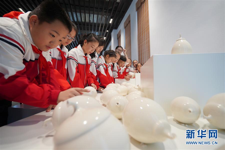 9月17日,河北省内丘县实验小学学生在邢瓷文化体验馆内参观。当日,河北省内丘县实验小学组织开展“浸润本土文化 感受家乡之美”主题社会实践活动。学生们来到内丘“邢窑三馆”——中国邢窑博物馆、邢窑遗址博物馆、邢瓷文化体验馆,参观邢白瓷藏品,学习邢白瓷知识,感受家乡邢窑文化。新华社记者朱旭东 摄