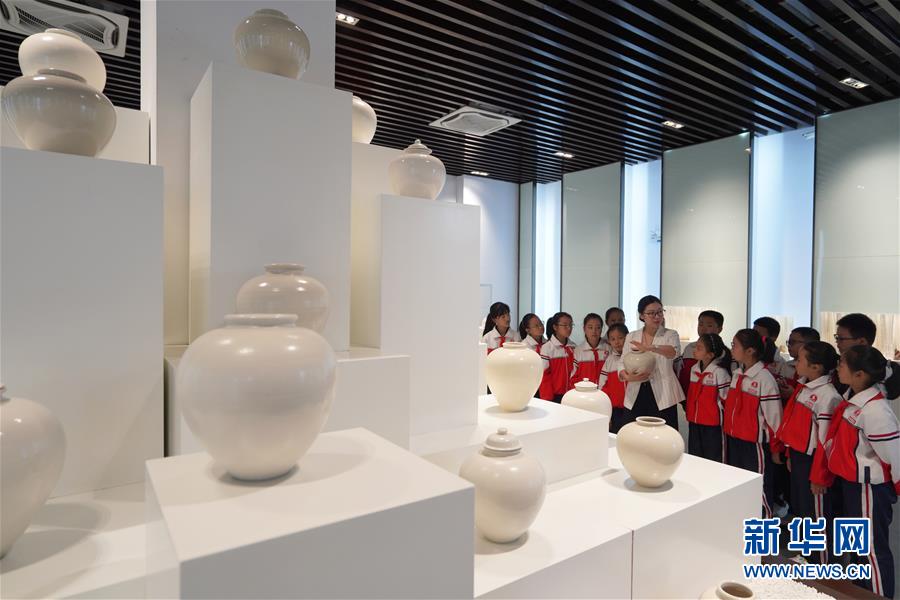 9月17日,在河北省内丘县邢瓷文化体验馆,工作人员为小学生们讲解邢白瓷知识。当日,河北省内丘县实验小学组织开展“浸润本土文化 感受家乡之美”主题社会实践活动。学生们来到内丘“邢窑三馆”——中国邢窑博物馆、邢窑遗址博物馆、邢瓷文化体验馆,参观邢白瓷藏品,学习邢白瓷知识,感受家乡邢窑文化。新华社记者朱旭东 摄