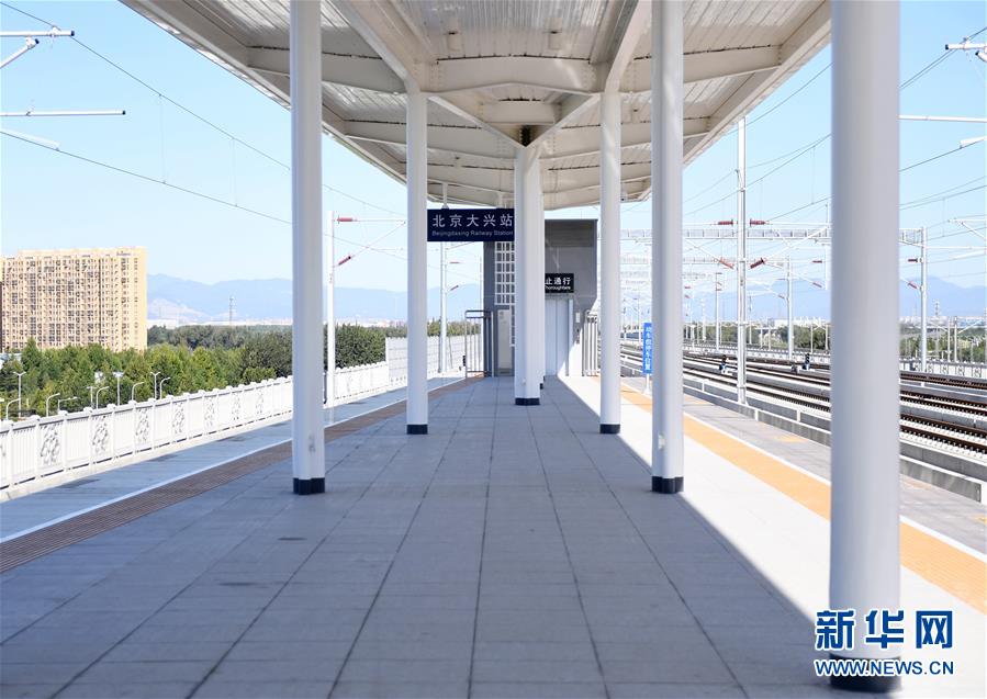 9月18日拍摄的京雄城际北京大兴站站台。当日,京雄城际北京大兴站通过设计验收。北京大兴站未来是北京大兴机场与北京城区接驳的重要节点,同时也是北京与雄安新区的重要桥梁。新华社记者张晨霖 摄
