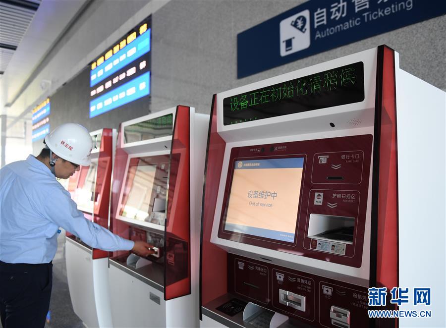 9月18日,工作人员对京雄城际北京大兴站内的自动售票机进行检查。当日,京雄城际北京大兴站通过设计验收。北京大兴站未来是北京大兴机场与北京城区接驳的重要节点,同时也是北京与雄安新区的重要桥梁。新华社记者张晨霖 摄