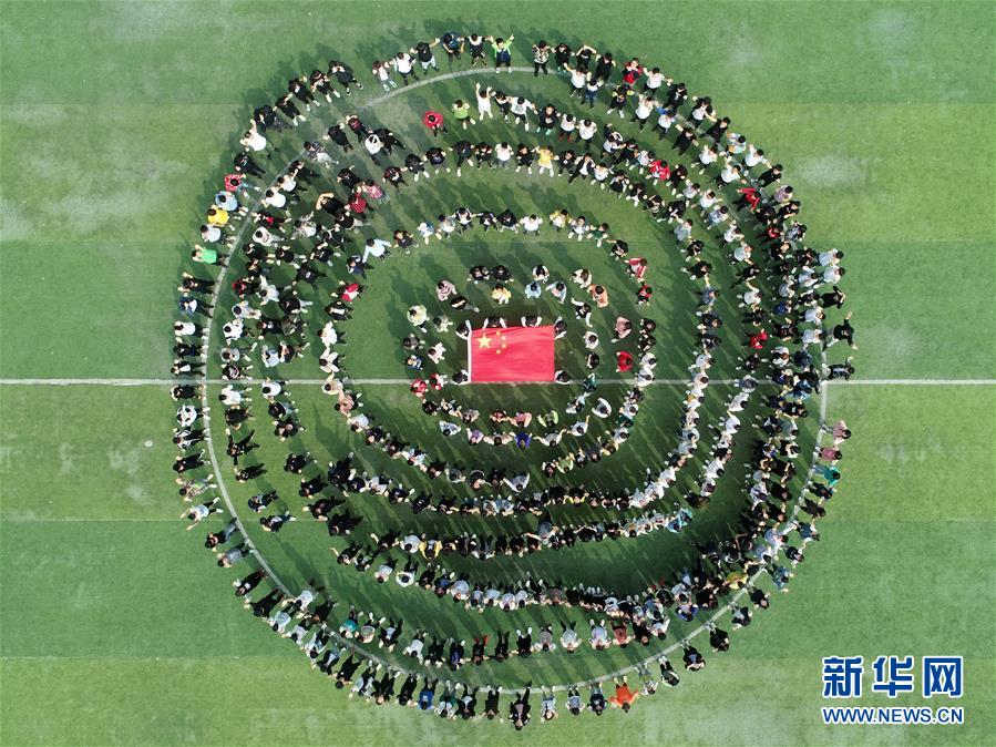 9月18日,邢台技师学院的学生参加快闪活动“我和国旗有个约会”。当日,河北省邢台技师学院开展“青春告白中国”活动,学生们通过唱歌、快闪、专业课程等形式,表达对祖国的热爱和祝福。新华社记者邢广利 摄