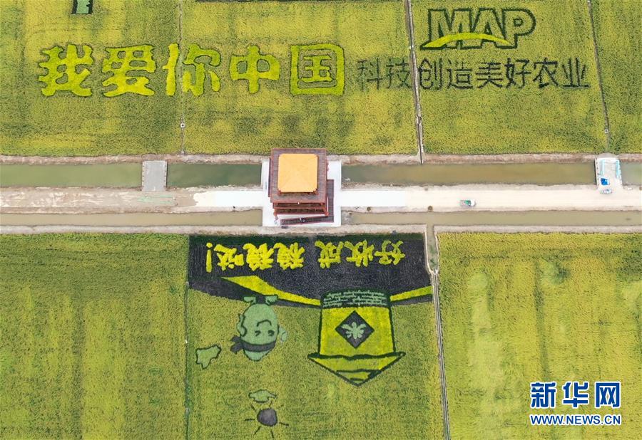 近日,位于天津市西青区王稳庄镇中化现代农业MAP示范农场的大型稻田画进入最佳观赏期。据了解,该处稻田画总面积约23亩,中间设置了高约20米的观景台,以方便游客观赏。新华社记者李然 摄