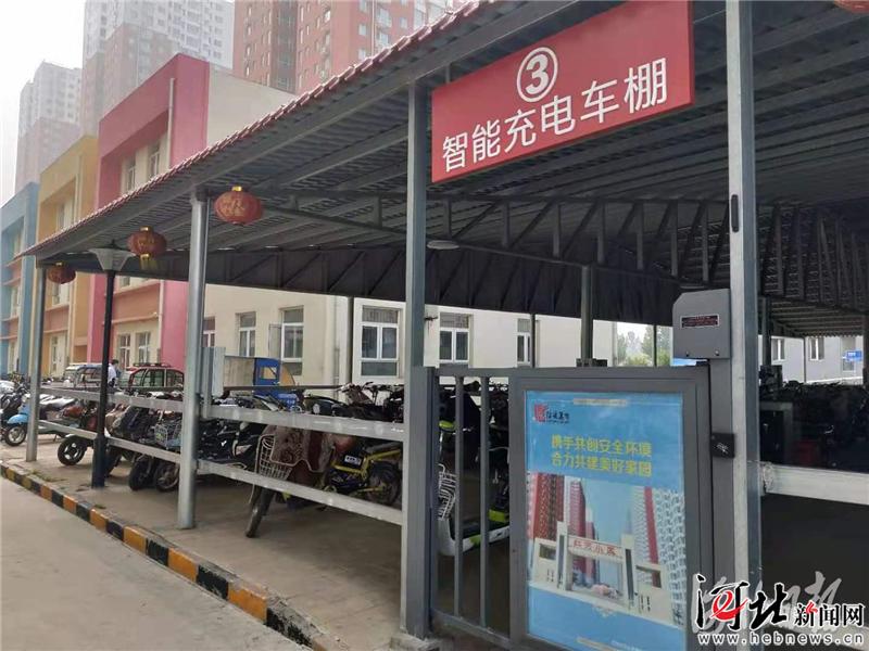 石家庄市公租房小区红河小区内的智能充电车棚。记者宋平 摄