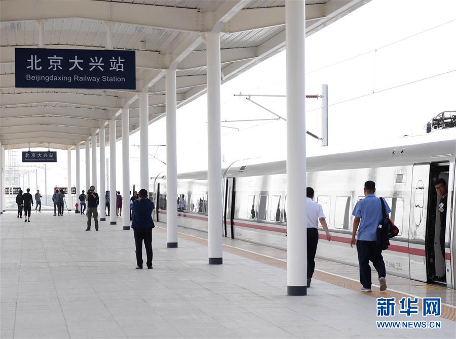 9月20日,试运营的京雄城际铁路高铁复兴号列车停靠在北京大兴站。截至目前,京雄城际铁路(北京段)已先后完成轨道、供电、接触网、通信、信号等各系统在内的联调联试,动车组按照运行图组织行车运行试验,工程初步验收和安全评估等也已完成。京雄城际铁路(北京段)即将开通运营。新华社记者 张晨霖 摄