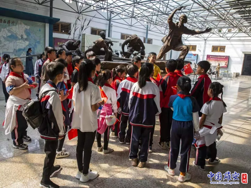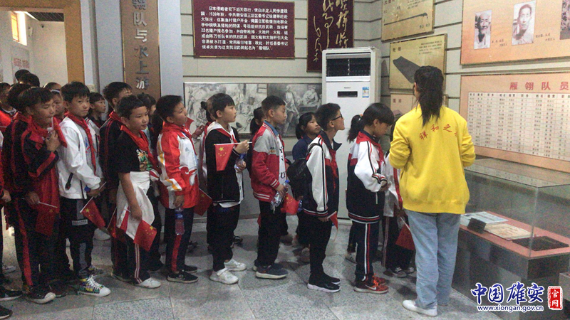 孩子们认真听讲解员讲述雁翎队的故事。中国雄安官网发