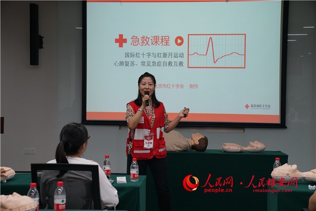 北京市红十字会应急救护培训基地的讲师做急救培训。苏丹丹 摄