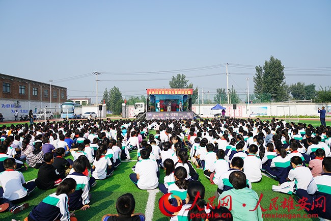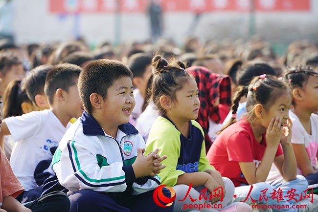 图为安新县第二小学的学生正在观看演出。刘师豪 摄