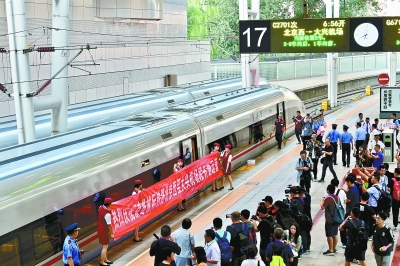 9月26日,近400名旅客乘坐京雄城际北京西站至大兴国际机场首发高铁列车C2701次,体验坐火车转飞机的便捷出行。