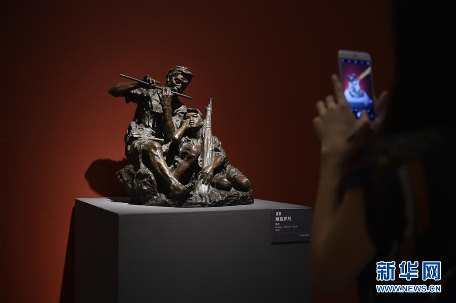 9月26日,观众在中国美术馆参观拍摄展出作品《艰苦岁月》。当日,“伟大历程 壮丽画卷——庆祝中华人民共和国成立70周年美术作品展”在北京中国美术馆开幕。展览以中国美术馆的馆藏作品为主,同时汇集国内20余个重要美术馆的经典藏品,共展出国画、油画、雕塑等480余件作品。新华社记者 鲁鹏 摄