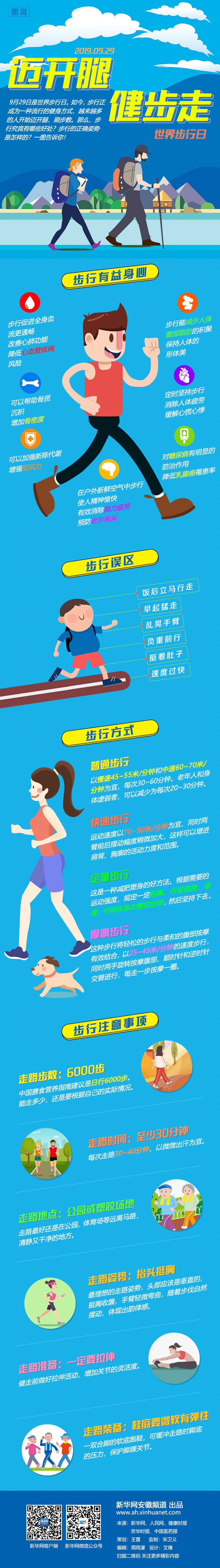9月29日是世界步行日。如今,步行正成为一种流行的健身方式,越来越多的人开始迈开腿,刷步数。那么步行究竟有哪些好处?步行的正确姿势是怎么样的?一图告诉你!