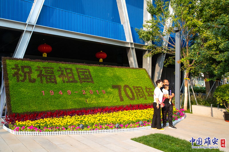 记者进入园区后发现,园区内多处点位布置了庆祝新中国成立70周年的彩旗及景观设计,营造出了浓厚的节日氛围。来自邢台的游客沈彬说:“国庆节来雄安新区参观非常有意义,园区内这些庆祝祖国生日的景观设计看上去特别漂亮。”